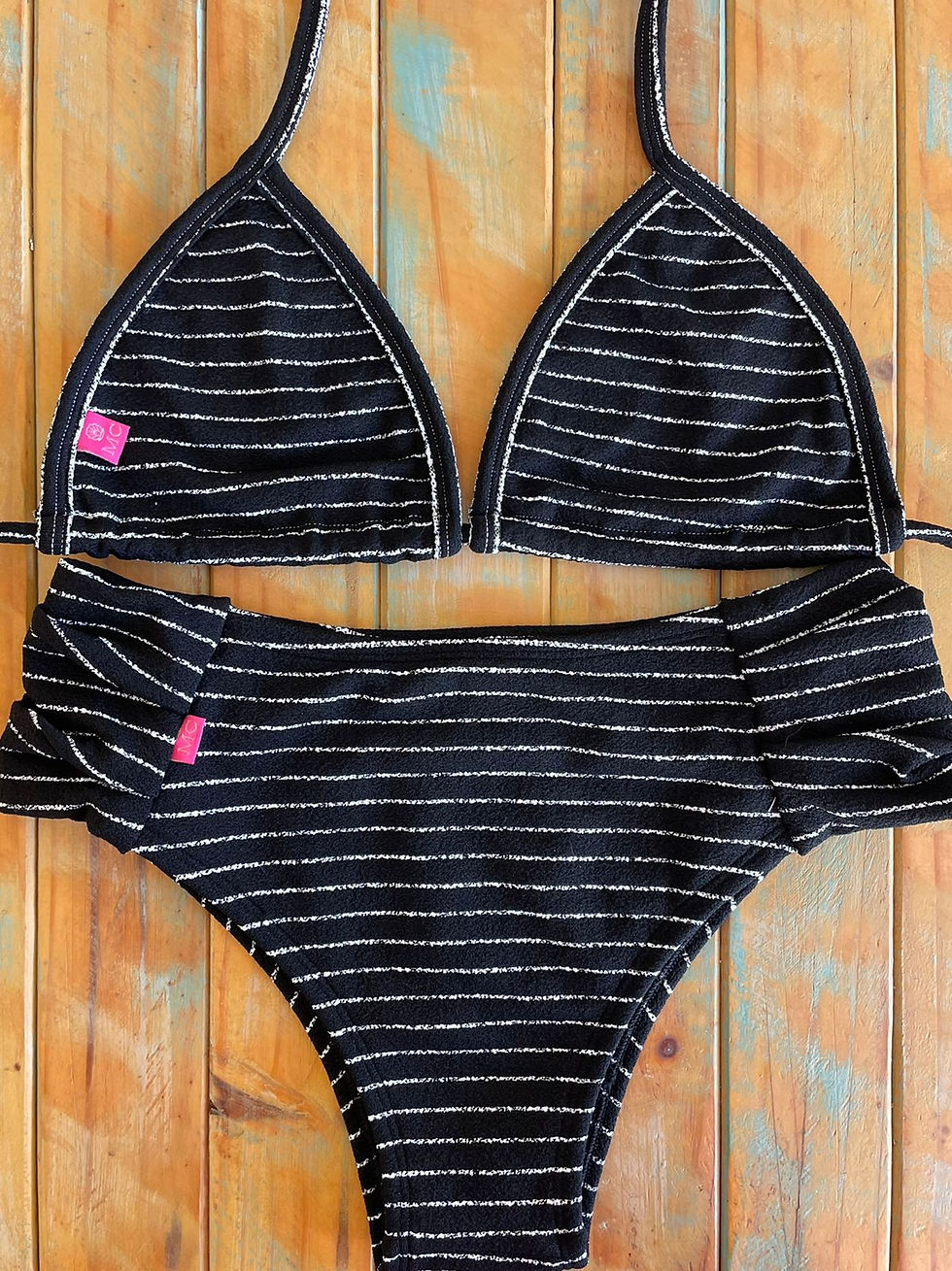 Combo 1 Parte de Cima Tomara que Caia com Bojo e alcinhas fixas , 2 Calcinhas Bombom Cós Alto, o modelo de calcinha Bombom Cós Alto fica 2 centimetros abaixo do umbigo.